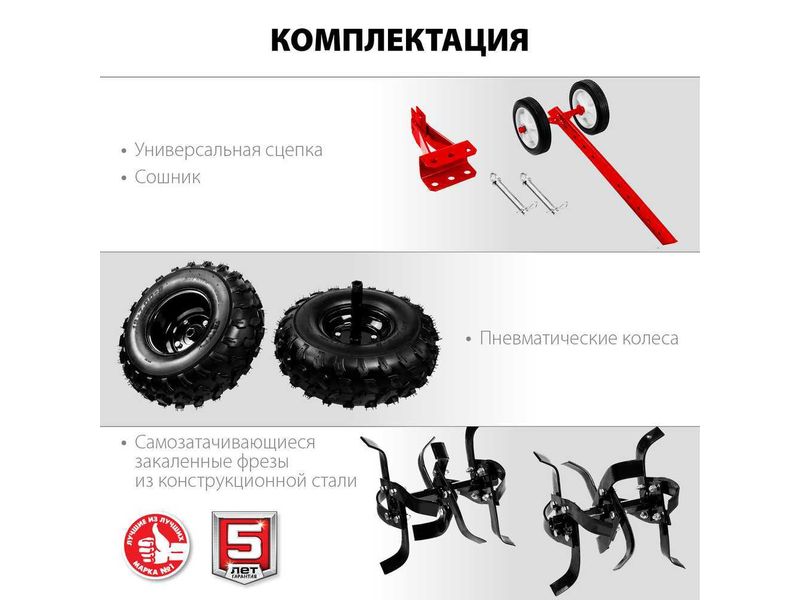 Мощный бензиновый мотоблок предназначен для рыхления и культивирования, а при использовании дополнительного навесного оборудования спектр применения мотоблока значительно расширится. Модель предлагает отличное сочетание высокой производительности, управляемости и устойчивости. Сделано в России. Обратите внимание, что c 07.2021 сошник поставляется без транспортировочных колес