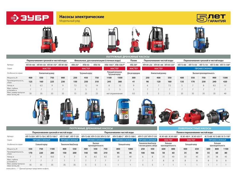 Купить Насос ЗУБР МАСТЕР М1 погружной дренажный для чистой воды (диаметр частиц до 5 мм), 250Вт, пропускная способность 90 л/мин, напор 6,0 м