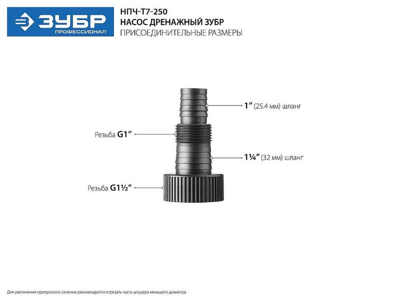 Универсальный соединительный штуцер от 1 до 1 1/4 для шлангов и от G1 до G1 1/2 для трубопроводов