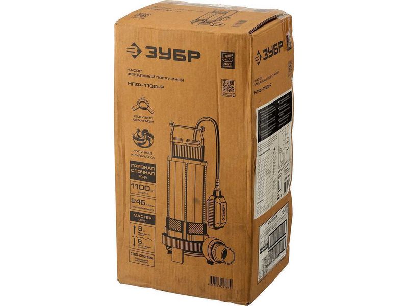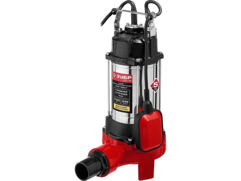 Купить Насос ЗУБР фекальный погружной, 1100 Вт, пропускная способность 245 л/мин, напор 8 м, чугунный корпус,с поплавком, с режущим механизмом
