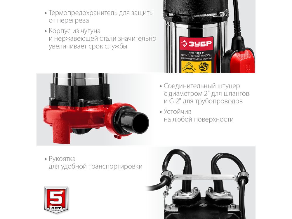 ЗУБР НПФ-1350-Р фекальный насос с режущим механизмом, 1350 Вт
