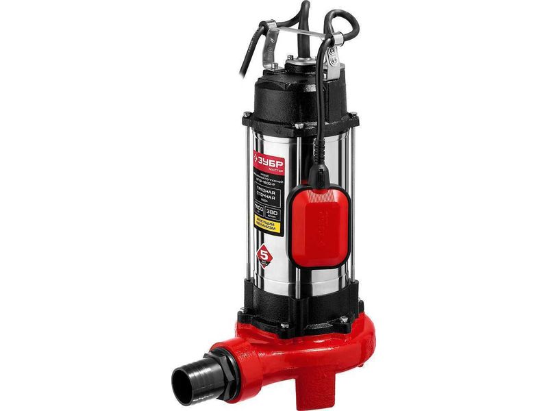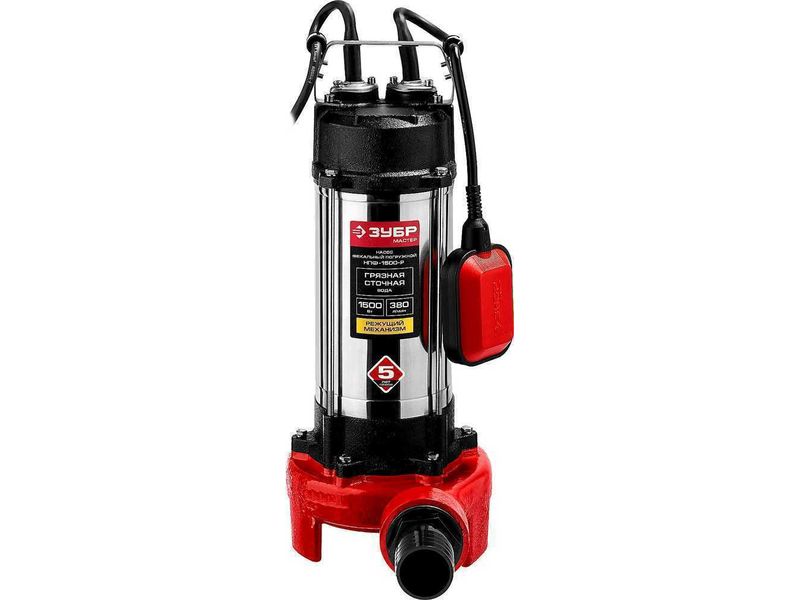 Купить Насос ЗУБР фекальный погружной, 1500 Вт, пропускная способность 380 л/мин, напор 15 м,чугунный корпус, с поплавком, с режущим механизмом
