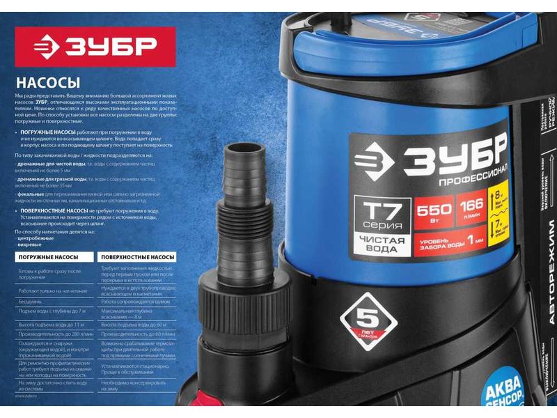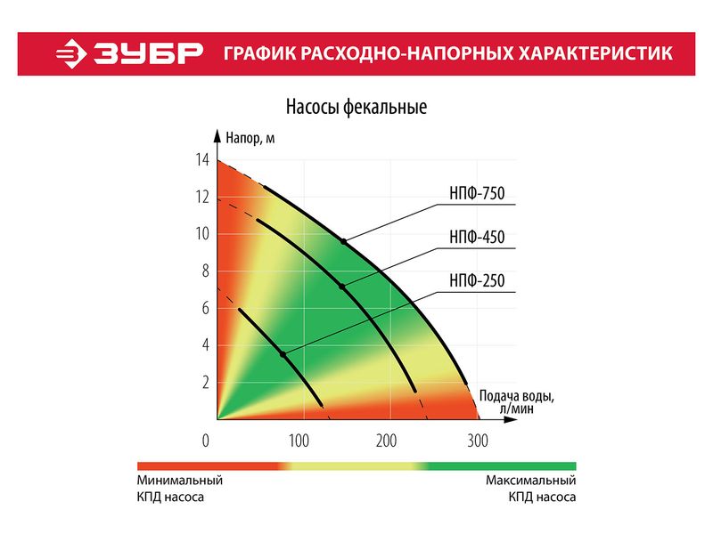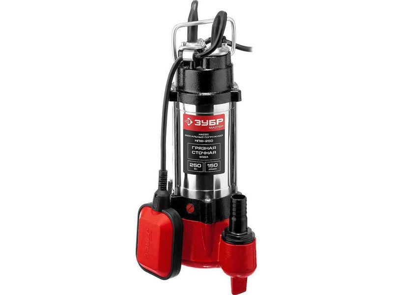 Купить Насос ЗУБР фекальный погружной, 250 Вт, пропускная способность 150 л/мин, напор 7,5 м, чугунный корпус, с поплавком