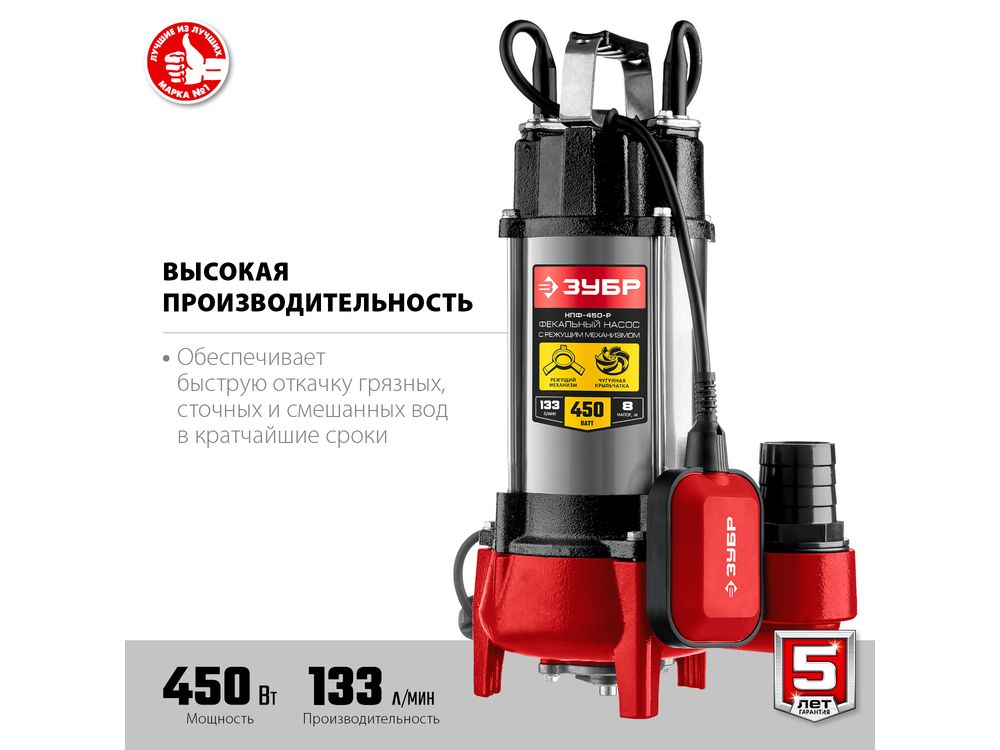 ЗУБР НПФ-450-Р фекальный насос с режущим механизмом, 450 Вт