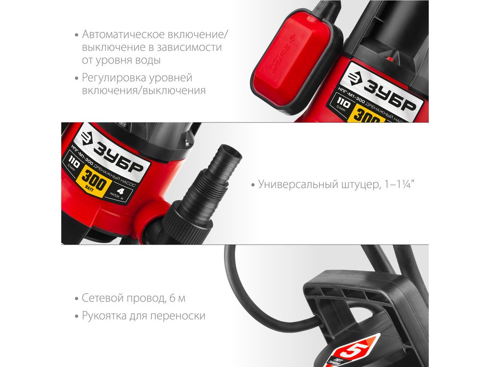 ЗУБР НПГ-М1-300, дренажный насос для грязной воды, 300 Вт