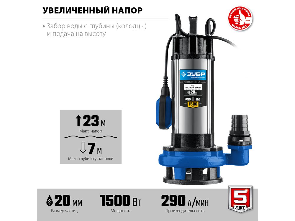 Купить ЗУБР Профессионал НПГ-Т5-1500 насос дренажный с большим напором, 1500 Вт