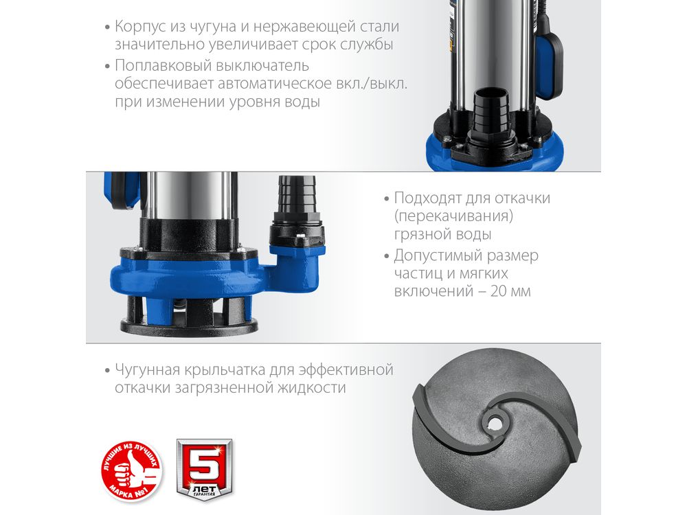 ЗУБР Профессионал НПГ-Т5-1500 насос дренажный с большим напором, 1500 Вт