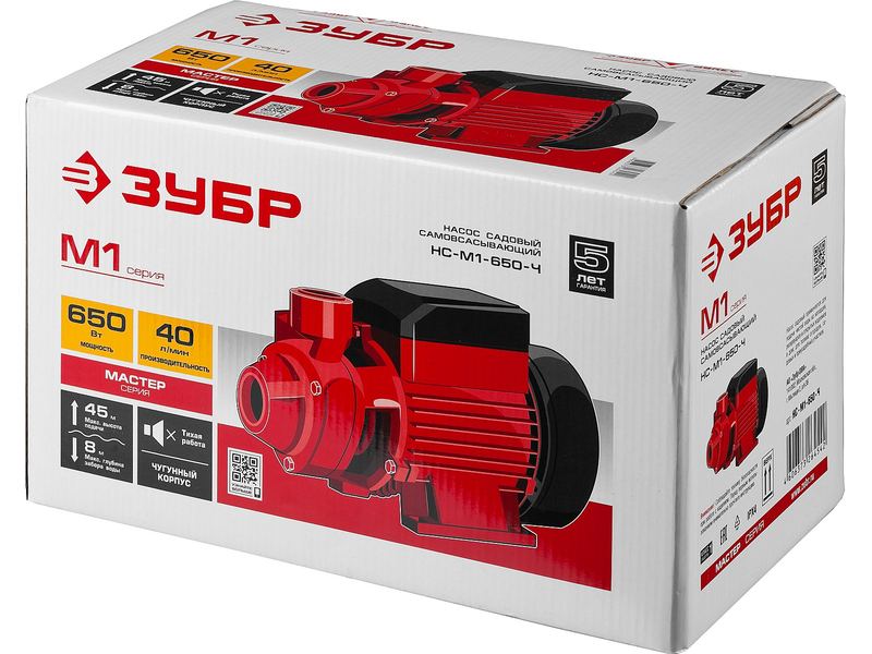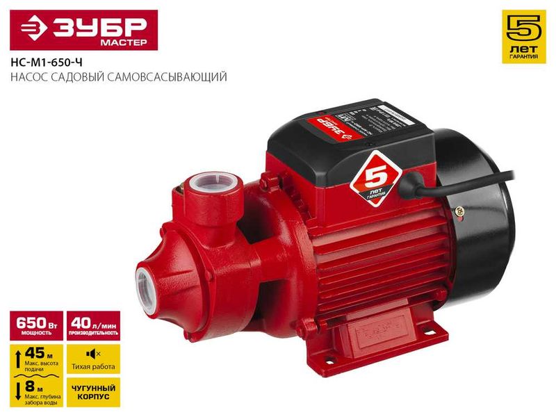 Насос ЗУБР МАСТЕР М1 садовый поверхностный самовсасывающий, 650Вт, пропускная способность 40л/мин, напор 35м, корпус из чугуна-448