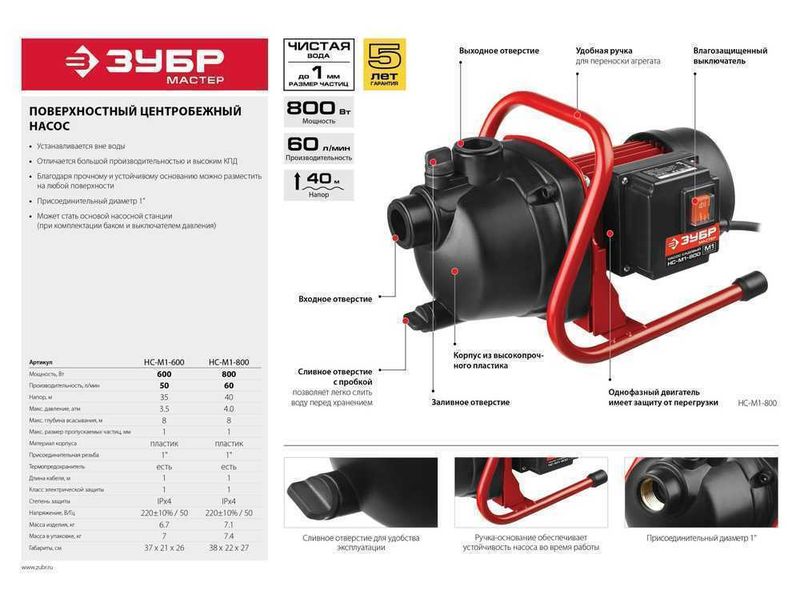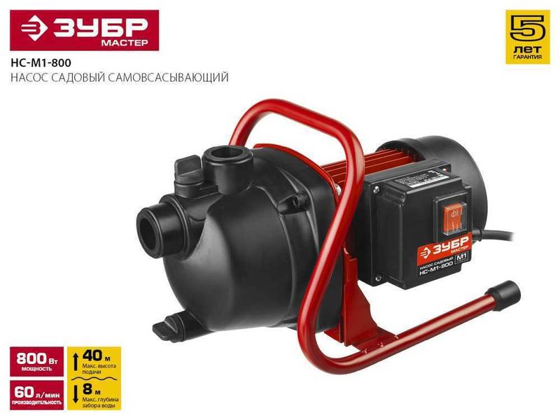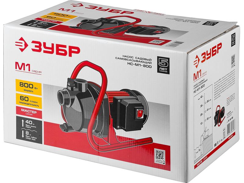 Купить Насос ЗУБР МАСТЕР М1 садовый поверхностный самовсасывающий, 800Вт, пропускная способность 60л/мин, напор 40м