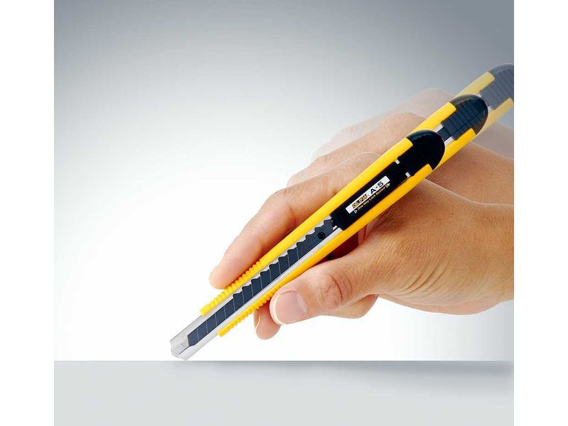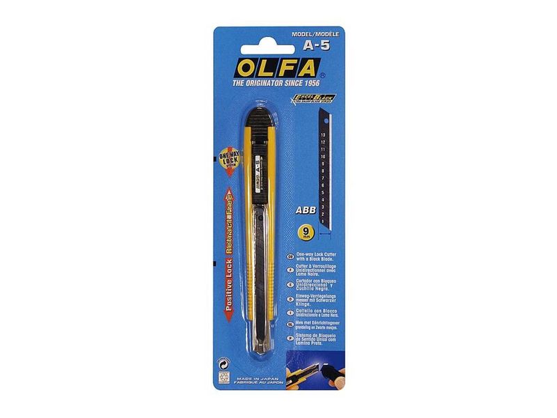 Благодаря односторонней системе запирания, нож OLFA A-5 представляет собой усовершенствованную модель с автоблокировкой и сверхострым черным лезвием.