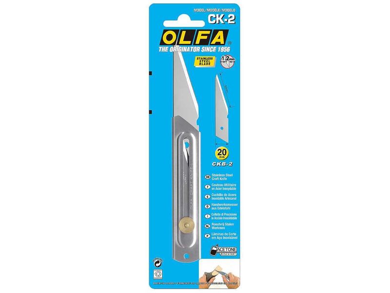 Сверхпрочный ремесленный нож OLFA CK-2 со специально разработанным лезвием для различных хобби, в том числе резьбы по дереву. Корпус и лезвие изготовлены из нержавеющей стали, что увеличивает прочность и срок службы инструмента, а также придает ножу устойчивость к коррозии.