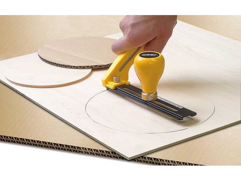 Отрегулируйте глубину лезвия с помощью колеса с храповым механизмом, чтобы эффективно разрезать материалы разной толщины, включая резиновые прокладки, бумагу, гипсокартон, картон, фанеру и многие другие. Ручка циркульного ножа перемещается по планке для выбора требуемого диаметра и фиксируется гайкой, встроенной в ручку. На планке нанесена шкала от 4 до 15 см с ценой деления 0.5 см.