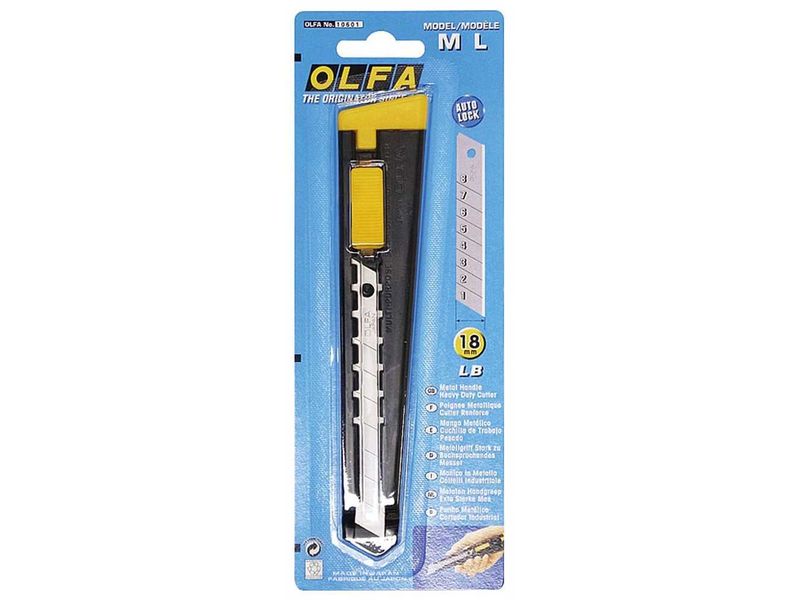 Если Вам нравится OLFA OL-180, но нужна большая сила реза, тогда универсальный нож с металлической ручкой OLFA ML шириной 18 мм — то, что вам нужно. Отличается тонким профилем, что позволяет носить его всегда с собой в кармане или сумке для инструментов. Стальная рукоятка устойчива к коррозии и химическим веществам. Предусмотрена автоматическая фиксация лезвия.