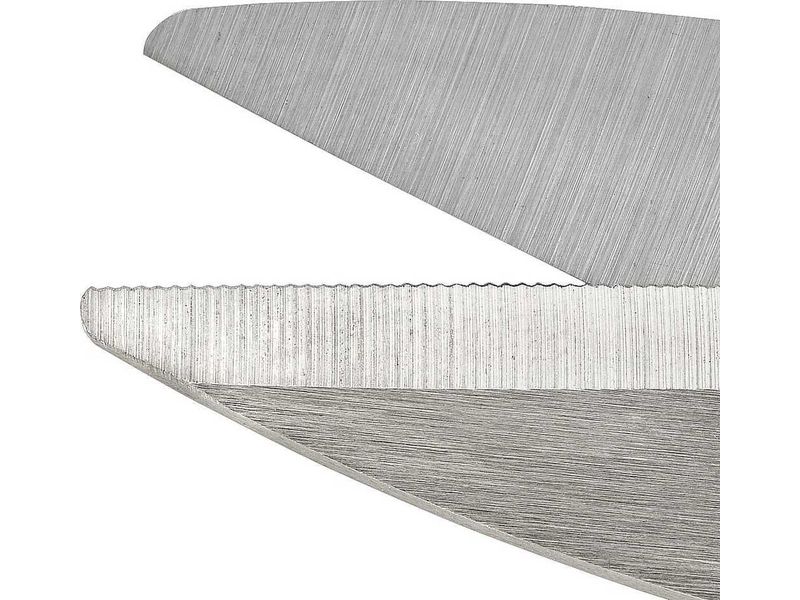 Режущие кромки инструмента заточены от основания до кончика, чтобы обеспечить чистый срез по всей длине. Лезвия изготовлены из нержавеющей стали и имеют специальную серрейторную заточку, что исключает соскальзывания материала при работе. Закругленной кончик лезвия повышает безопасность при использовании.