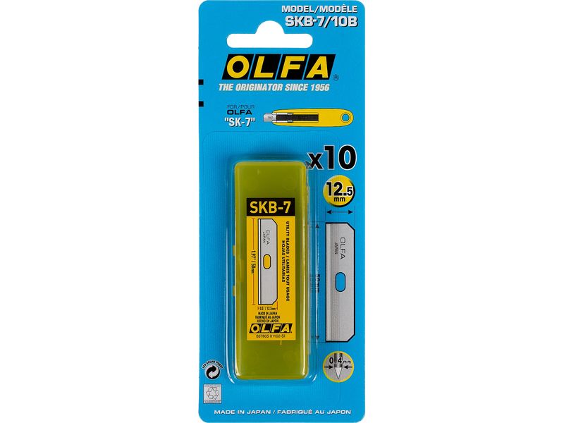 Лезвия OLFA SKB-7/10B изготовлены из высококачественной японской инструментальной стали и профессионально заточены для обеспечения превосходной остроты и непревзойденной долговечности режущей кромки. Кромка под углом 90 ° повышает устойчивость лезвия и уменьшает количество случайных проколов материала во время работ. Наклонная конструкция в верхней части лезвия помогает правильно определить положения лезвия для установки. Поставляются в пластиковом футляре для хранения и утилизации.