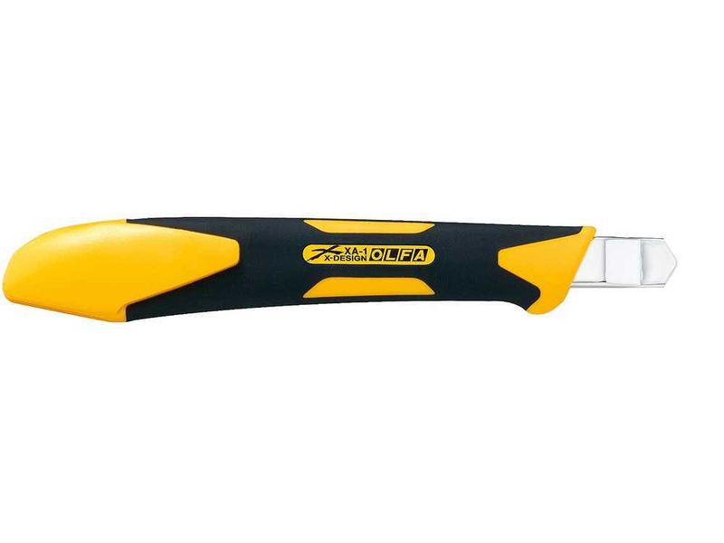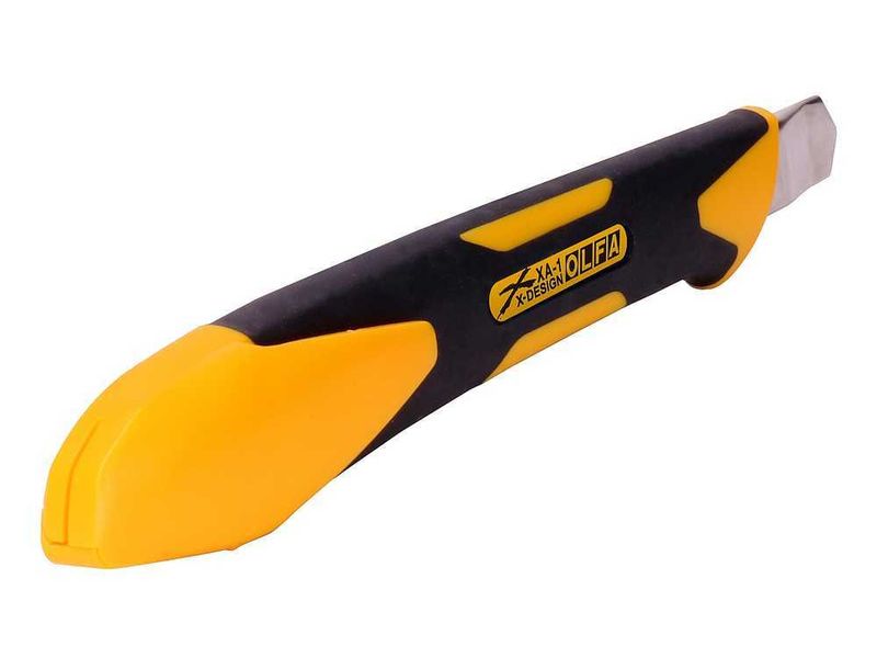 Нож OLFA XA-1 — хорошо известная и зарекомендовавшая себя модель с автоблокировкой и острым черным лезвием. Изготовлен из армированного фиберглассом полипропилена, соединенного с эластомером. Такая рукоятка более стойкая к ацетону, кислоте и повреждениям, что делает нож оптимальным для строительных и малярных работ.