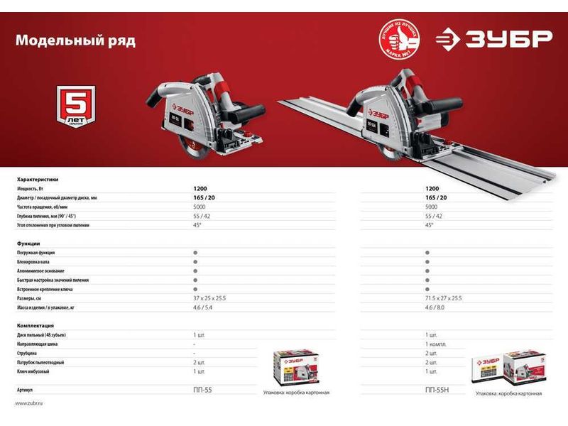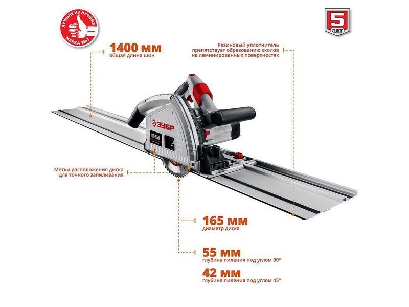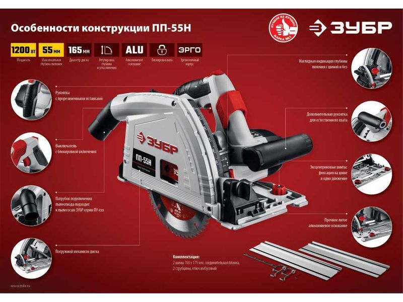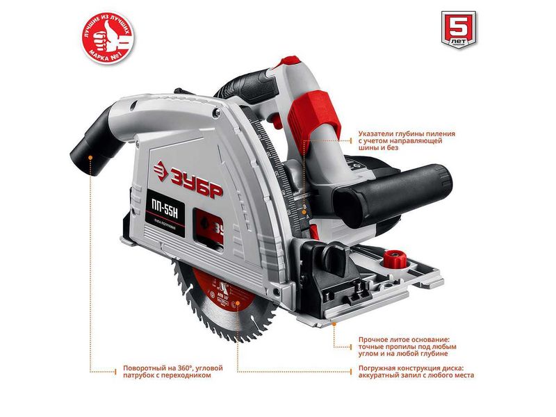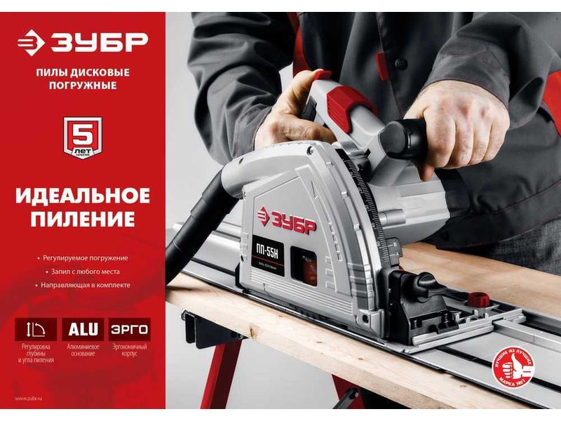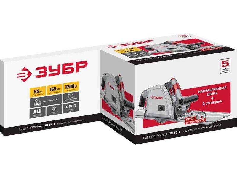 Пила погружная с шиной, 90°-55 мм, диск 165 мм, 1200 Вт, ЗУБР
