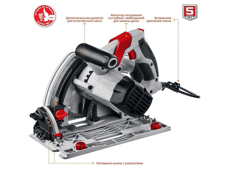 Изделие для работ, требующих повышенной точности распила. Система погружения позволяет начать пиление в любой точке заготовки, благодаря чему можно выпиливать внутренние вырезы (например, под мойку или встраиваемую технику). Основание с соответствующим пазом позволяет использовать направляющую шину, что делает качественное пиление простым. Шина в комплекте существенно увеличивает точность пиления при длинных распилах Внимание! Начиная с даты производства 08.2022, инструмент поставляется в красном цвете вместо серого. Без изменения уровня качества