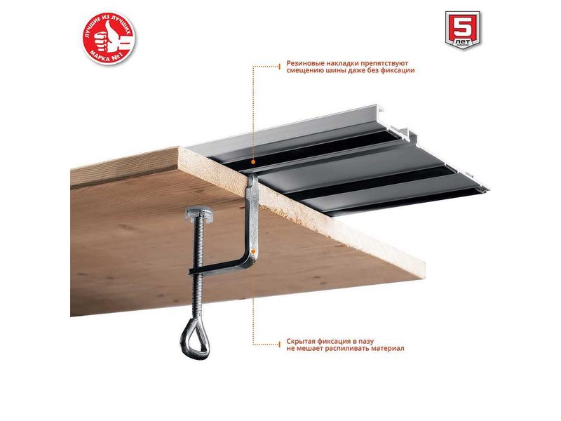 Направляющие шины (2х70 см) в комплекте аналогичны шинам Festool - это возможность точного пиления без дополнительных затратl
