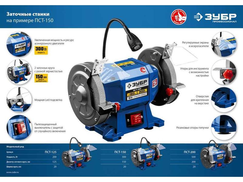 Купить ЗУБР ПСТ-125 профессиональный заточной станок, d125 мм, 200 Вт