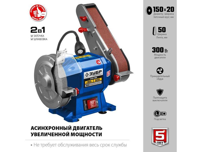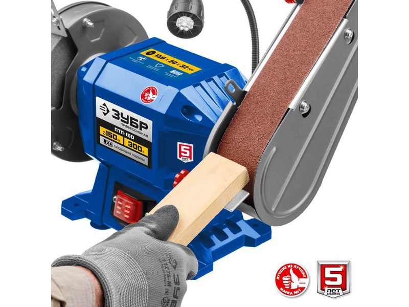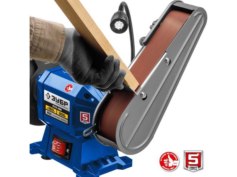 ЗУБР ПТЛ-150 заточной станок с шлифовальной лентой, d150 мм, 300 Вт