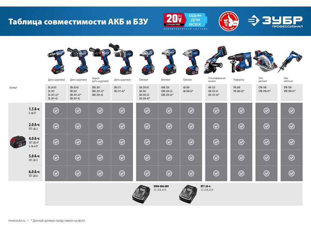 ЗУБР 20В, 6А, тип T7, зарядное устройство для Li-Ion АКБ, Профессионал. RT7-20-6