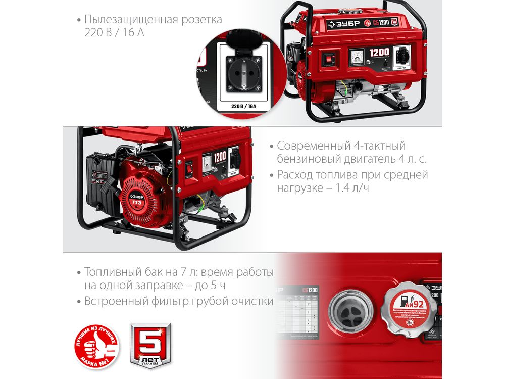 Тип генератора: бензиновый, однофазный, синхронный, щеточный