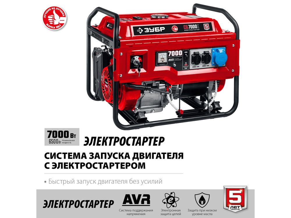 СБ-7000Е бензиновый генератор с электростартером, 7000 Вт, ЗУБР