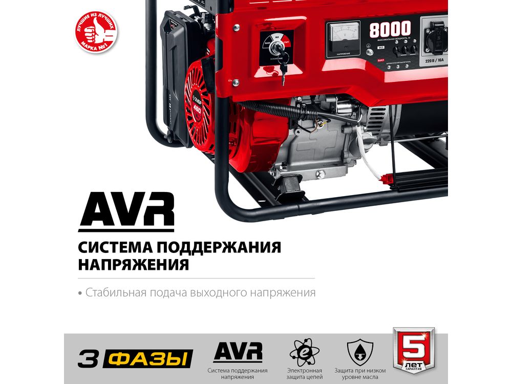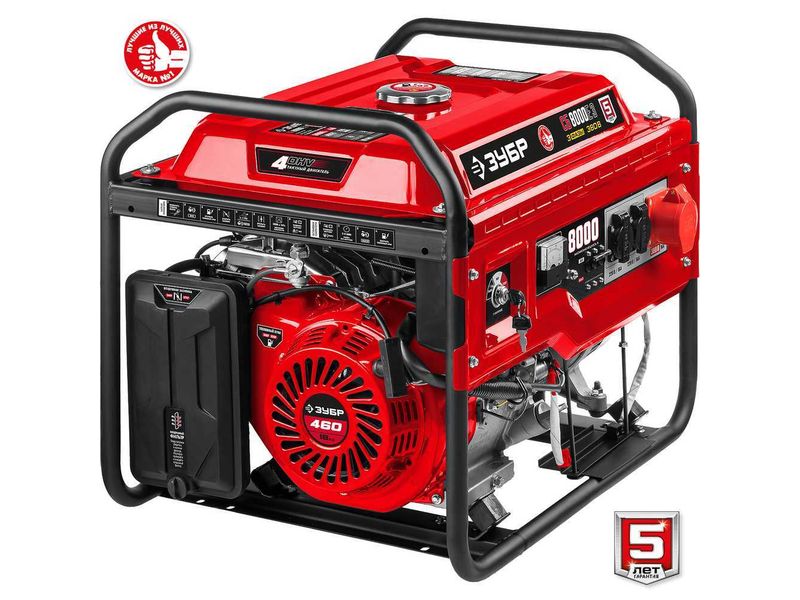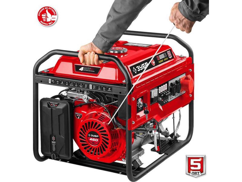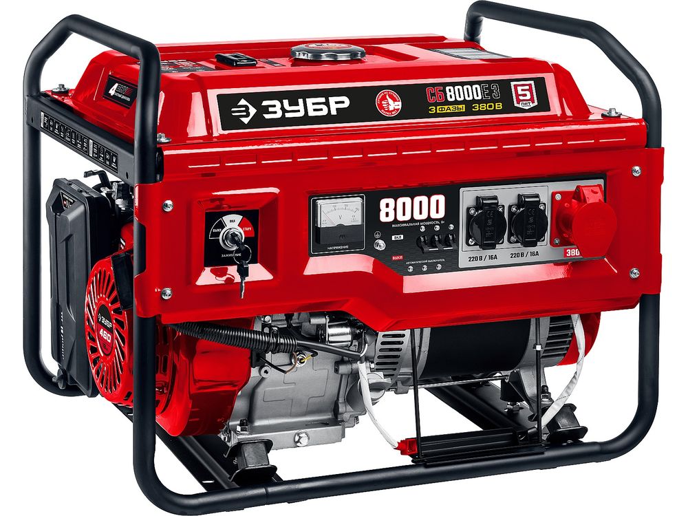 Купить 380 В бензиновый генератор с электростартером, 8000 Вт, ЗУБР