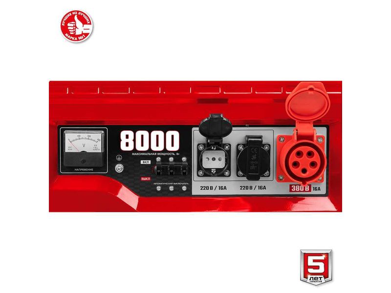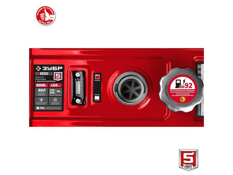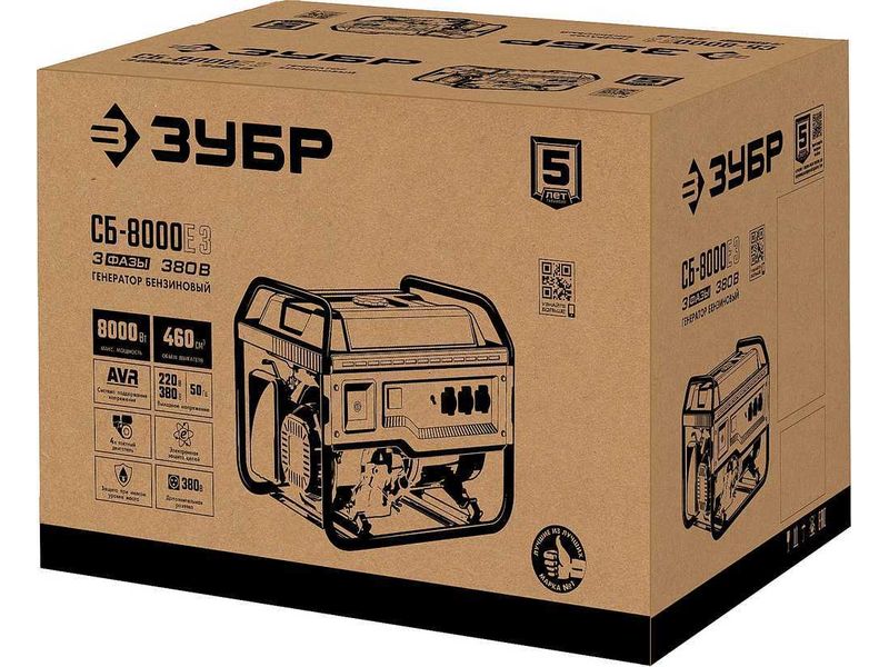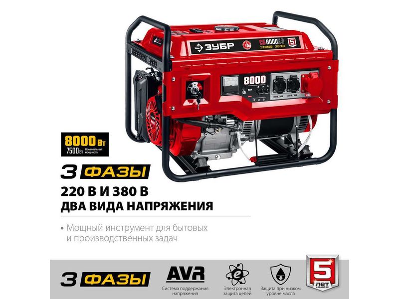 380 В бензиновый генератор с электростартером, 8000 Вт, ЗУБР