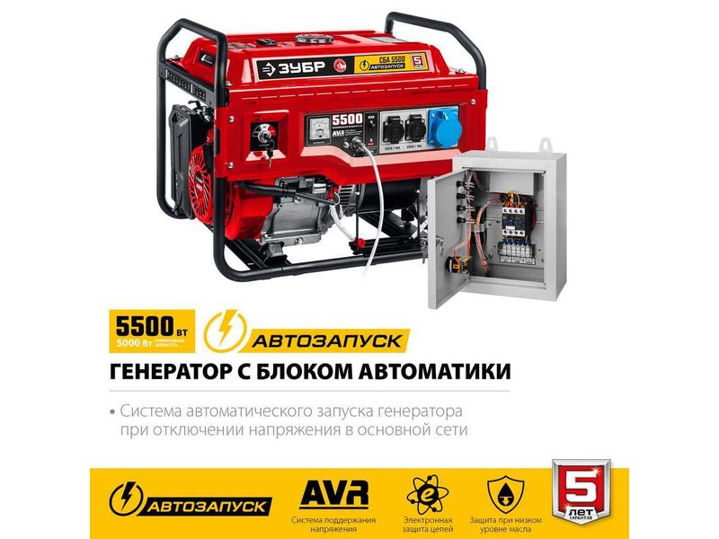 СБА-5500 бензиновый генератор с автозапуском, 5500 Вт, ЗУБР