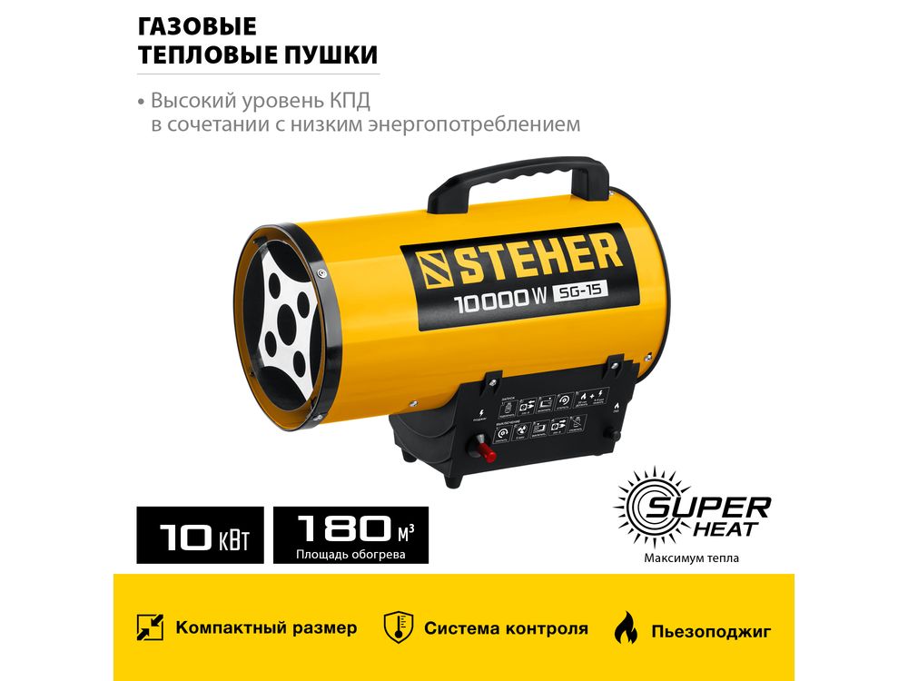Газовые тепловые пушки STEHER - мощные теплогенераторы, работающие наиболее распространенном виде топлива. Компактный корпус, контроль наличия пламени, биметаллический термопредохранитель и двойное теплоэкранирование. Оптимальное решение для прогрева складских и производственных помещений.