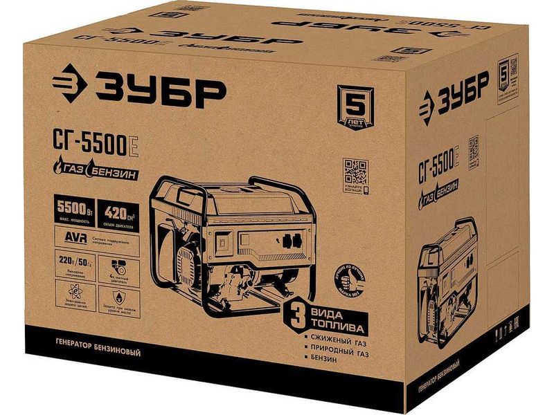 Купить СГ-5500Е генератор гибридный (бензин / газ) с электростартером, 5500 Вт, ЗУБР
