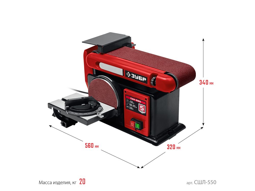 ЗУБР d 150 мм, 100 х 914 мм лента, 550 Вт, тарельчато - ленточный шлифовальный станок (СШЛ-550)