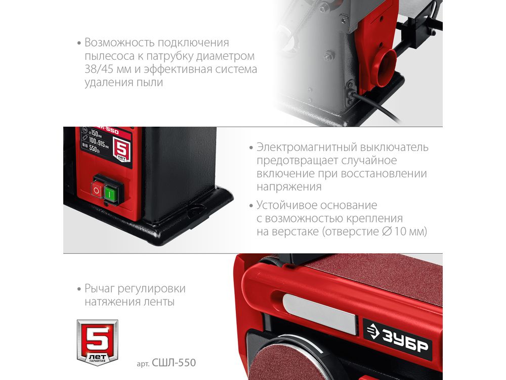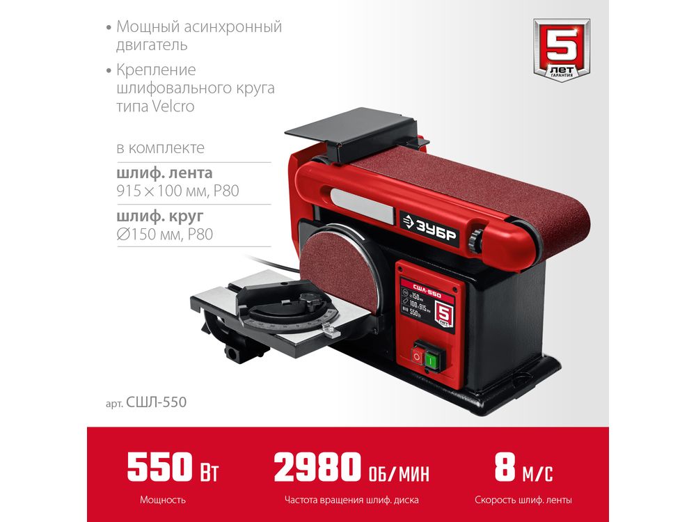 Купить ЗУБР d 150 мм, 100 х 914 мм лента, 550 Вт, тарельчато - ленточный шлифовальный станок (СШЛ-550)