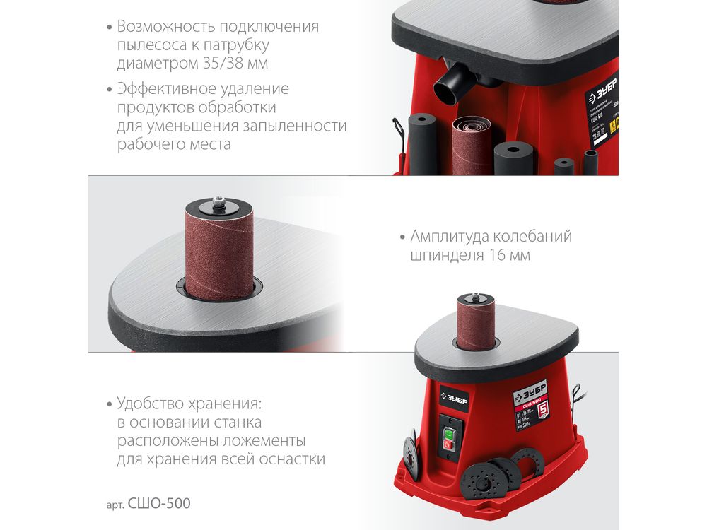 ЗУБР d 13, 19, 26, 38, 51, 76 x 115, 500 Вт, осцилляционный шпиндельный шлифовальный станок (СШО-500)