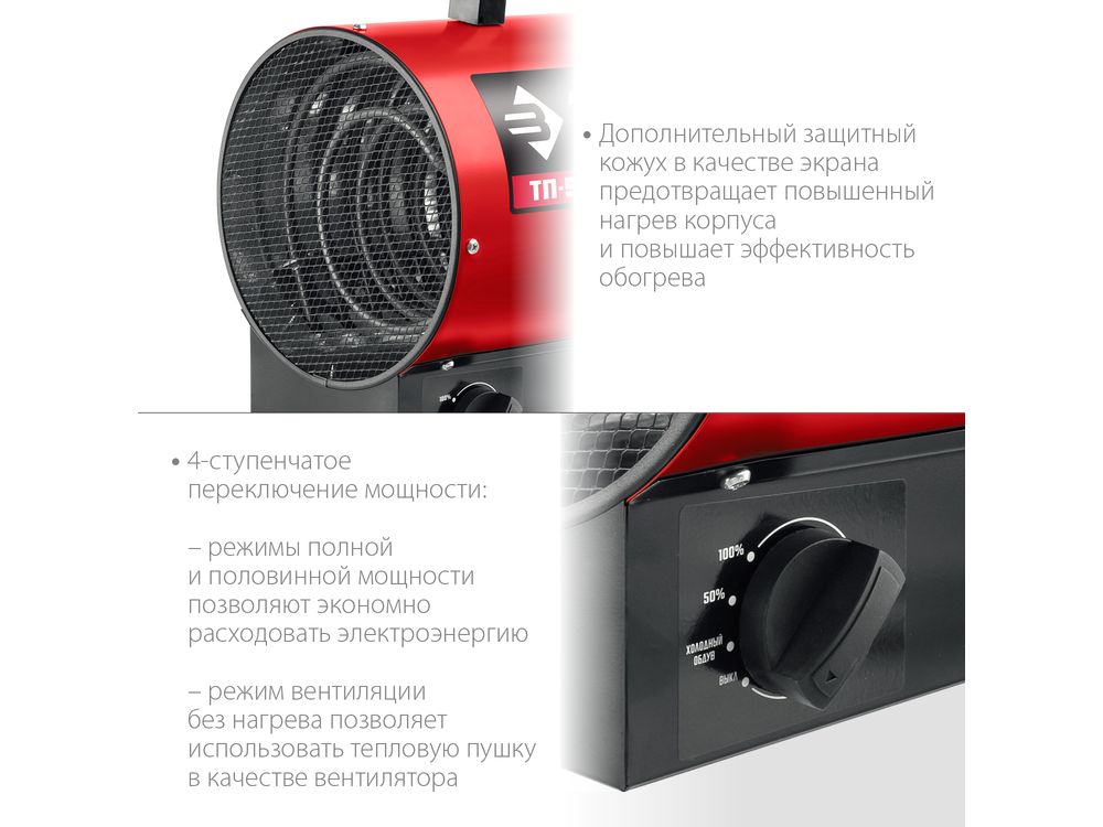 Компактный и легкий обогреватель в круглом корпусе для квартиры, загородного дома, мастерских гаражей и т.д. Большая площадь ТЭНов и эффективный обдув способствуют более быстрому нагреву помещения. Конструктивные меры безопасности (дополнительный защитный кожух, термопредохранитель, заземление корпуса) защищают Вас и изделие при нештатных ситуациях. Сделано в России ЗУБР - тепло и уют Вашего дома