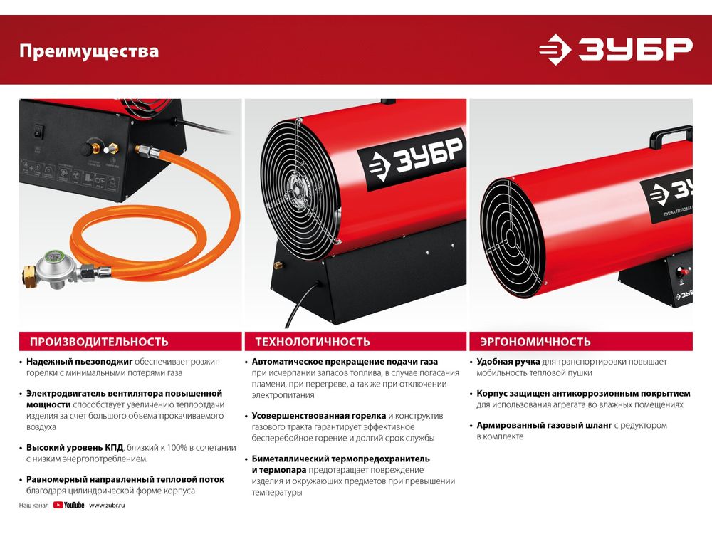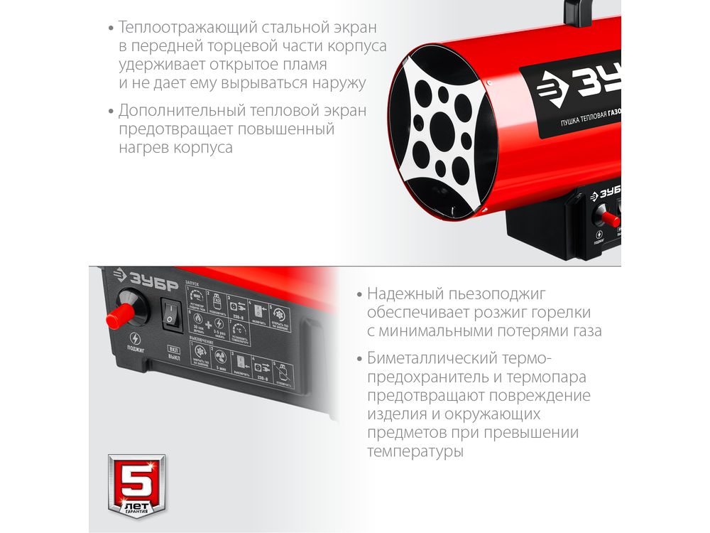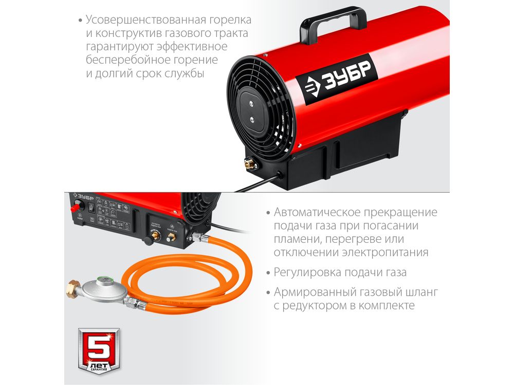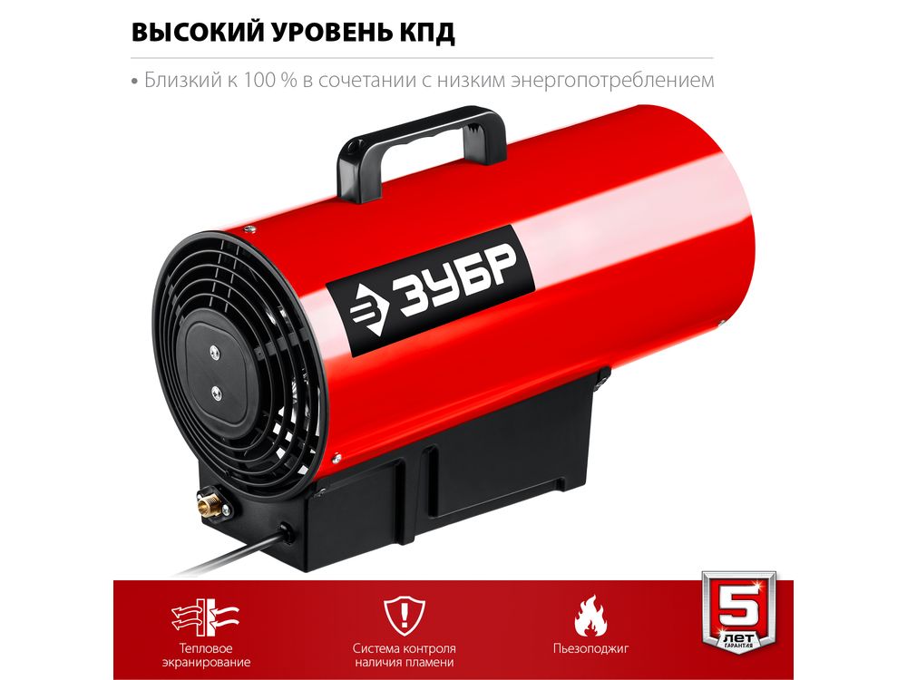 Высокоэффективный газовый обогреватель, работающий на наиболее распространенном виде топлива. Оптимально подходит для использования на открытых и полузакрытых площадках для просушки и обогрева, размораживания траншей и аварийного прогрева помещений, а так же для монтажа натяжных потолков. Надежный поджиг дуги и эффективное горение гарантируют безотказную подачу тепла в любых условиях эксплуатации. Сделано в России ЗУБР - тепло всегда и везде