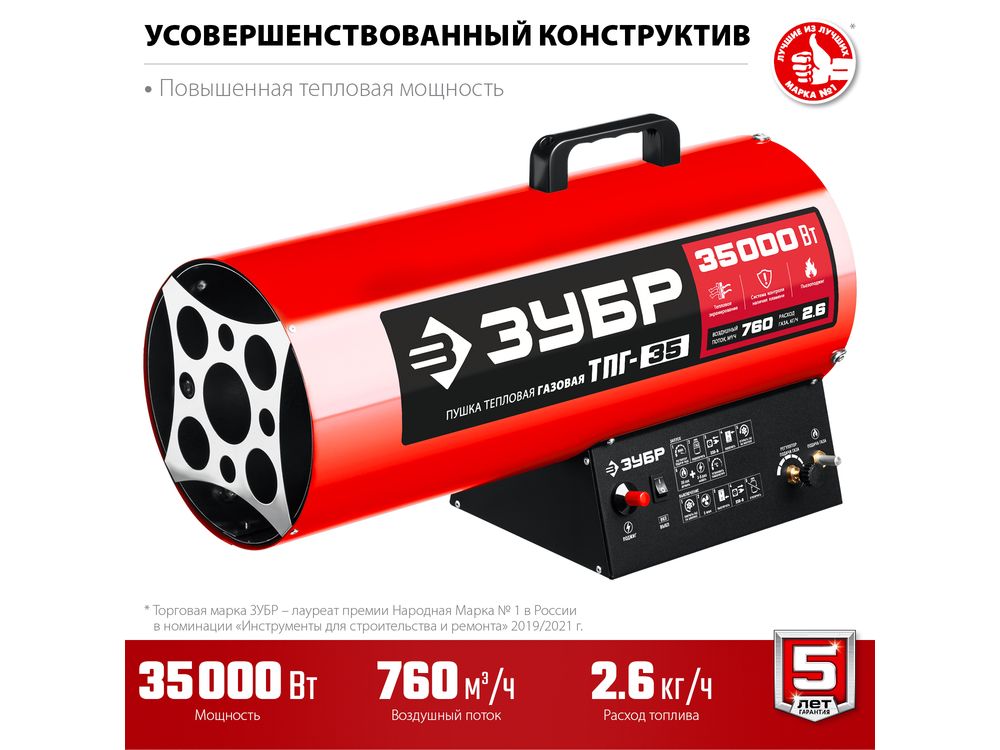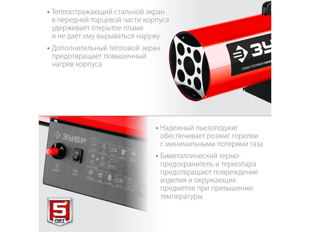 Высокоэффективный газовый обогреватель, работающий на наиболее распространенном виде топлива. Оптимально подходит для использования на открытых и полузакрытых площадках для просушки и обогрева, размораживания траншей и аварийного прогрева помещений, а так же для монтажа натяжных потолков. Надежный поджиг дуги и эффективное горение гарантируют безотказную подачу тепла в любых условиях эксплуатации. Сделано в России ЗУБР - тепло всегда и везде