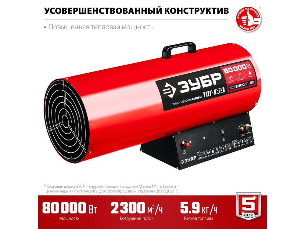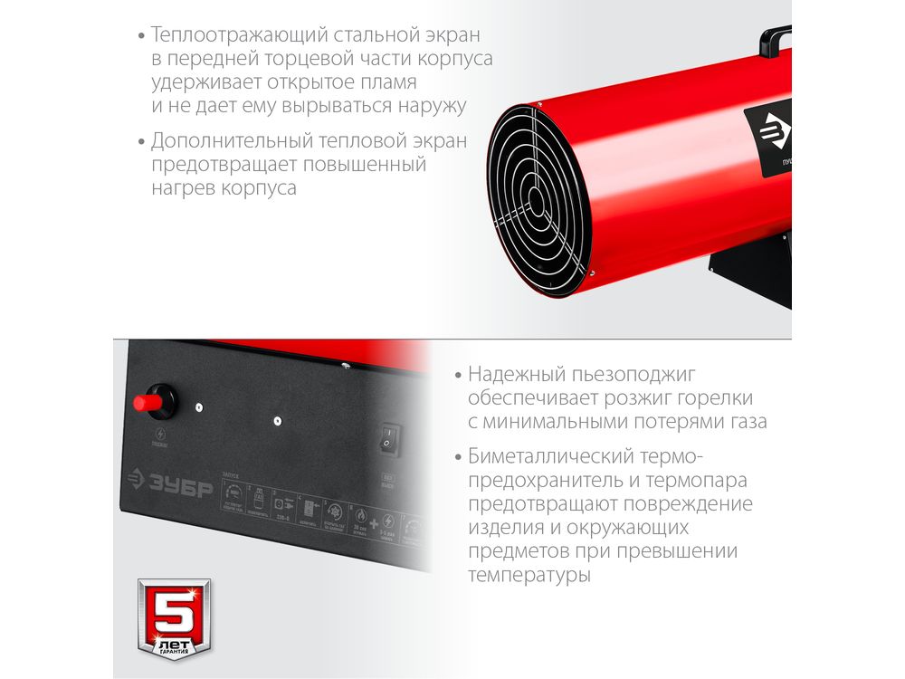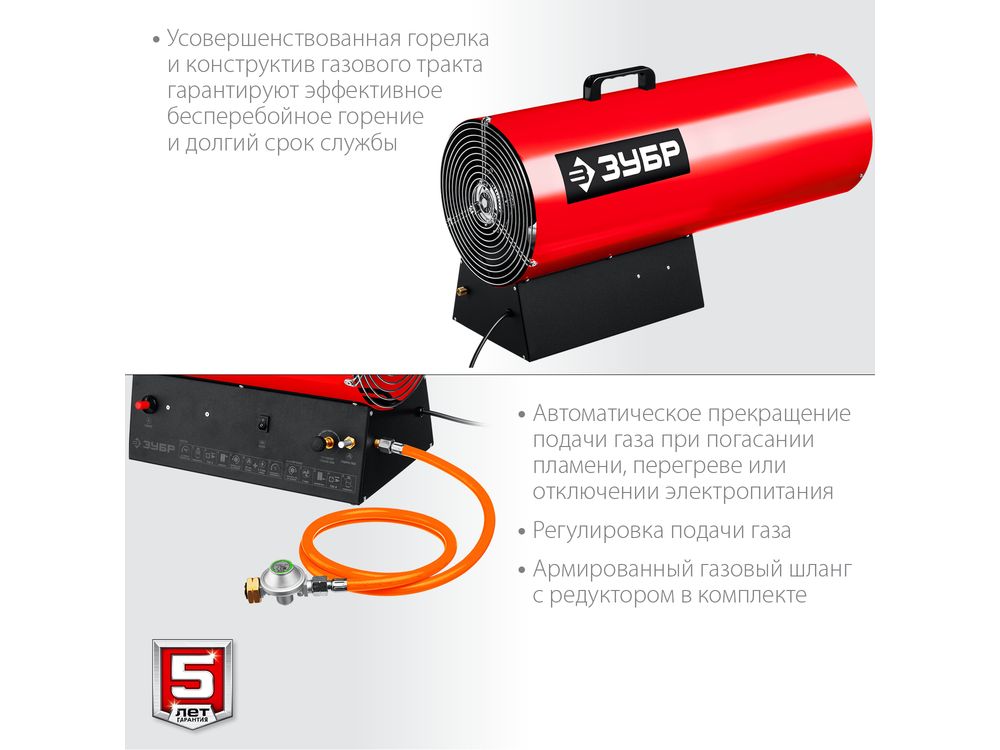 Высокоэффективный газовый обогреватель, работающий на наиболее распространенном виде топлива. Оптимально подходит для использования на открытых и полузакрытых площадках для просушки и обогрева, размораживания траншей и аварийного прогрева помещений, а так же для монтажа натяжных потолков. Надежный поджиг дуги и эффективное горение гарантируют безотказную подачу тепла в любых условиях эксплуатации. Сделано в России ЗУБР - тепло всегда и везде
