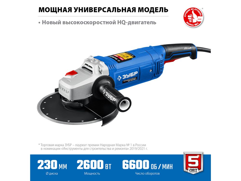 УШМ ЗУБР Профессионал, УШМ-П230-2600 п, 230 мм, 2600 Вт