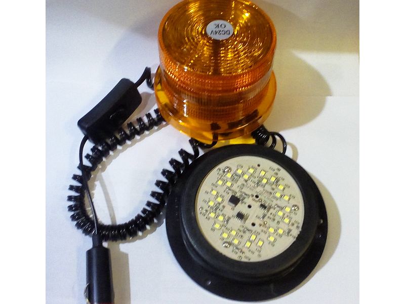Маяк проблесковый светодиодный малый 24 V h-100, d-125, d-90 плафона, на магните, с выключателем, в прикуриватель AT-125/24 LED-1002