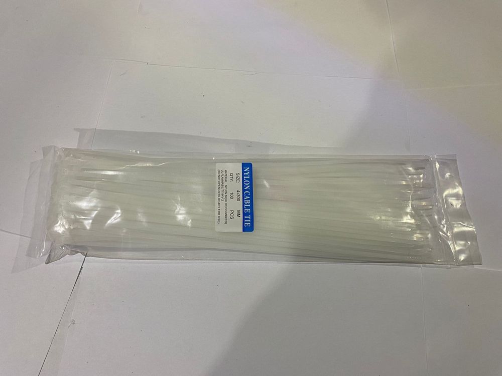 Хомуты-стяжки белые, 4 х 300 мм, 100 шт, нейлоновые-202