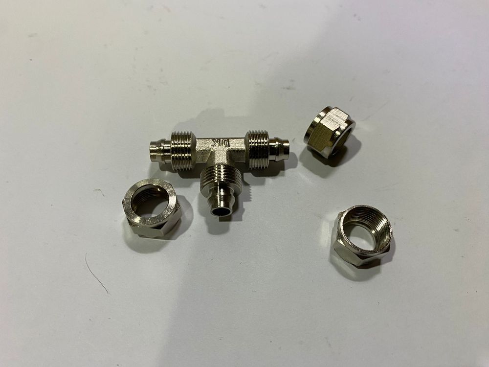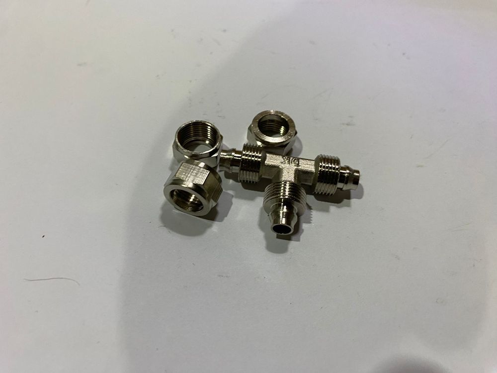 Фитинг металл тройник Т, для пластиковых трубок, гайка 10мм