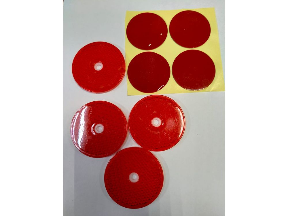 Катафот красный круглый 4шт (светоотражатель) на липучке-1853