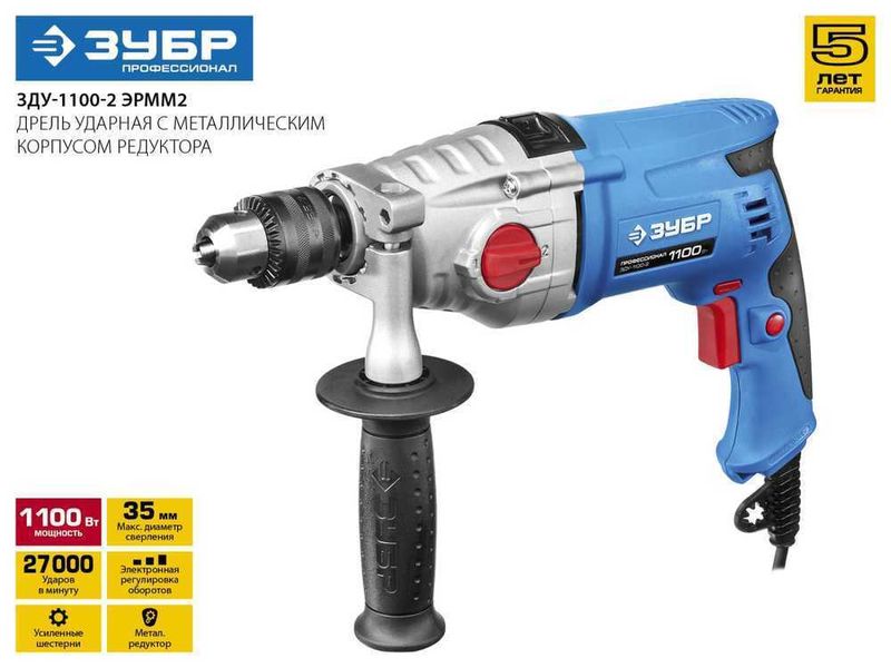 Незаменимый помощник для сверления отверстий в различных материалах (дерево, сталь и т. д.). Благодаря микроудару подходит для алмазного сверления. Профессионального уровня дрель с металлическим корпусом, двухскоростным редуктором, качественным кулачковым патроном, плавной регулировкой оборотов и надежной конструкцией на подшипниках - лучший подарок мастеру. Функция сверления с ударом, широкий диапазон регулировки частоты вращения, удобная дополнительная рукоятка - все, что нужно для качественной работы