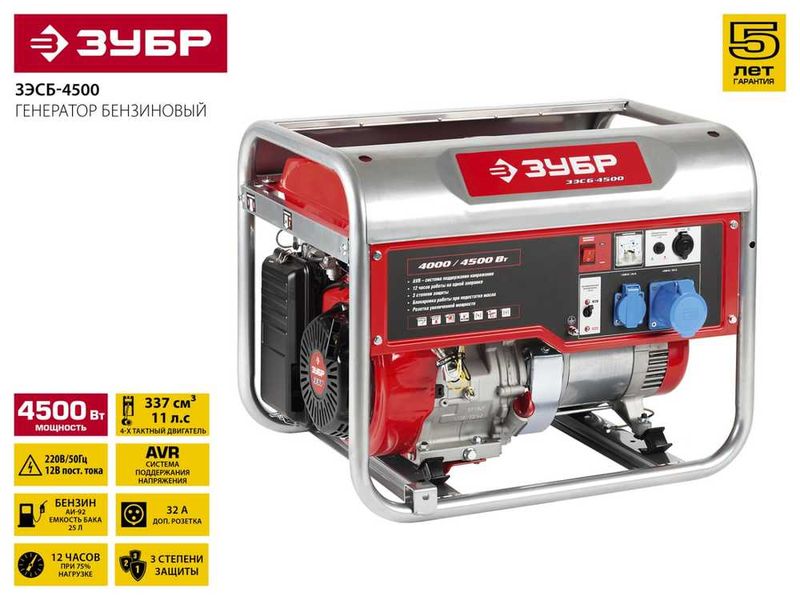 Мощный генератор для любых нужд. Позволит обеспечить энергией большинство потребителей в загородном доме, на строительной площадке и в мастерской;