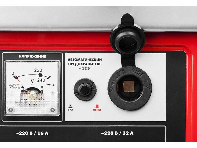 Розетка 220В увеличенной мощности для подключения наиболее мощных потребителей расширяет возможности использования генератора;
