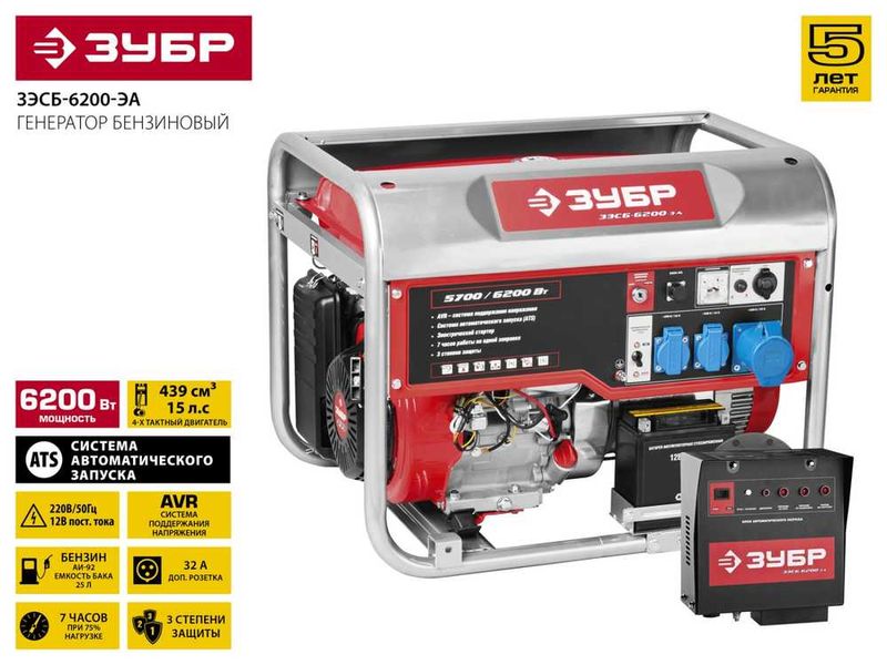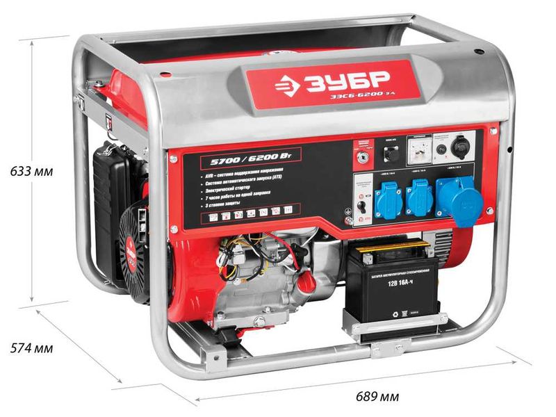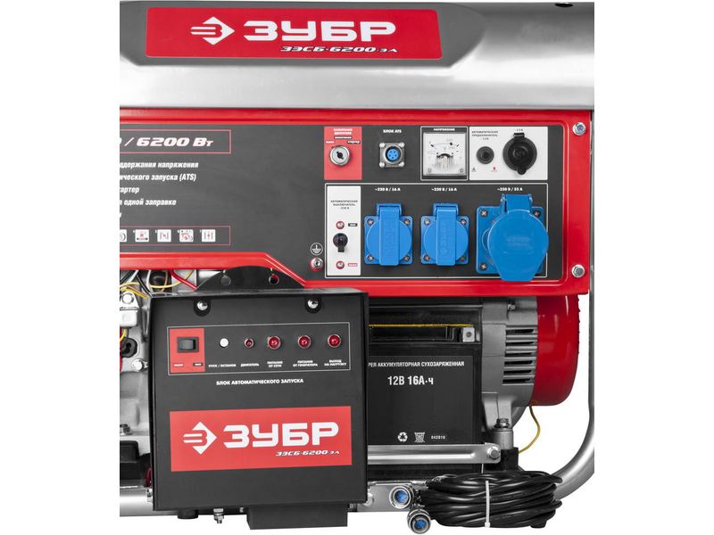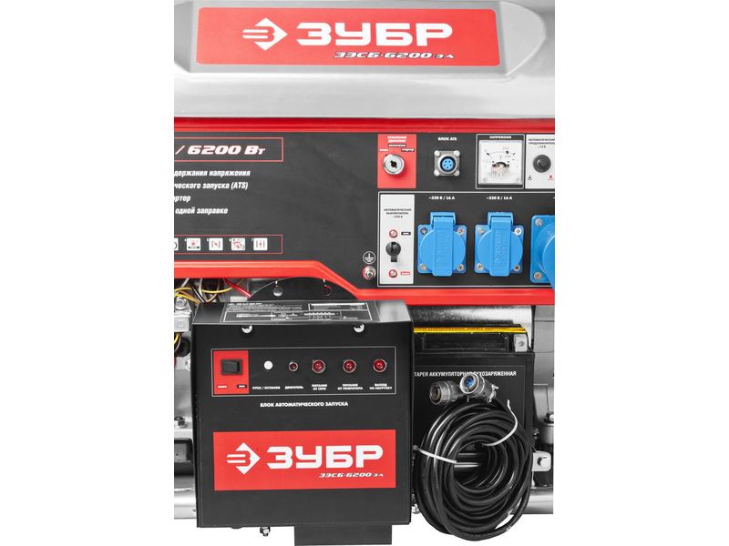 Купить Генератор ЗУБР бензиновый, 4-х тактный, ручной и электрический пуск, автоматический пуск, 6200/5700Вт, 220/12В