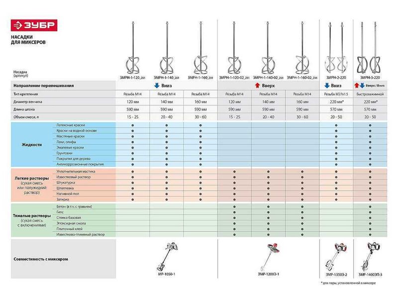 Купить Насадка ЗУБР ЭКСПЕРТ для миксеров ЗМР-1200Э-1, перемешивание снизу-вверх, М14, d 160, L 590 мм